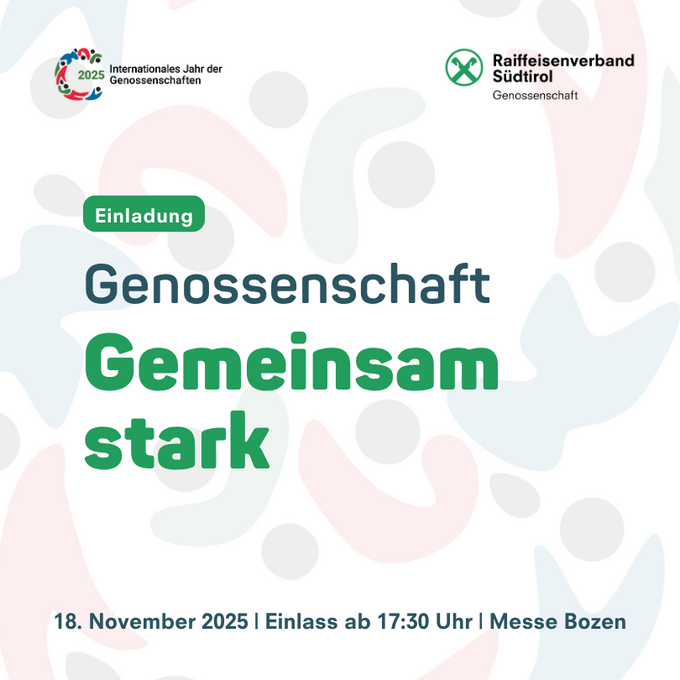 Das von den Vereinten Nationen ausgerufene Internationale Jahr der Genossenschaften 2025 dient dazu, die Scheinwerfer auf eine treibende Wirtschaftskraft zu lenken, die unser aller Leben durchdringt. Weltweit gibt es 3 Millionen Genossenschaften mit rund einer Milliarde Mitgliedern und 280 Millionen Arbeitsplätzen. Auch in Südtirol sind die Zahlen beeindruckend, da die 865 Genossenschaften im Land eine Vielzahl an Dienstleistungen abdecken, die der Einzelne nicht allein meistern könnte. Das Internationale Jahr der Genossenschaften steht unter dem Motto „Genossenschaften schaffen eine bessere Welt“. Auch in Südtirol zeigt sich dies in besonderem Maße: Landwirtschaftliche Genossenschaften, die Raiffeisenkassen oder Genossenschaften in den Bereichen Soziales, Energie oder Wasser verdeutlichen, wie eine Gemeinschaft zum Wohle vieler beiträgt. Ganze 364 Genossenschaften finden im Raiffeisenverband Südtirol ein gemeinsames Dach. Unser Leitspruch: Was einer alleine nicht schafft, schaffen wir gemeinsam.