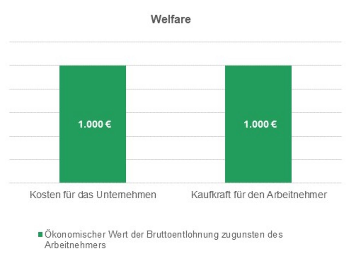 Wird derselbe Betrag hingegen in Form von Welfare-Leistungen zur Verfügung gestellt, entfallen Steuern und Sozialabgaben.