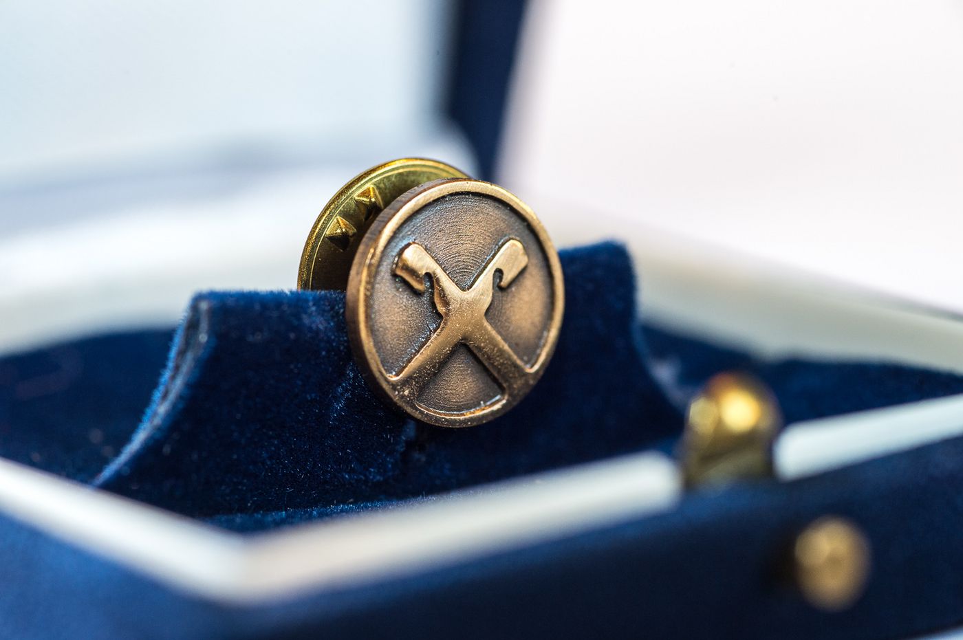 La spilla d’onore Raiffeisen reca il simbolo della cuspide, divenuto emblema del cooperativismo. Il riconoscimento è accompagnato da un attestato firmato dal Presidente della Federazione Cooperative Raiffeisen.