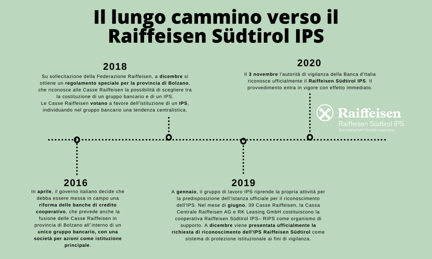 Nel 2019, 39 Casse Raiffeisen hanno fondato Raiffeisen Landesbank AG e RK Leasing GmbH ha fondato Raiffeisen Südtirol IPS (RIPS). Il 3 novembre 2020 la Banca d’Italia ha riconosciuto Raiffeisen IPS come sistema di tutela istituzionale a fini prudenziali.